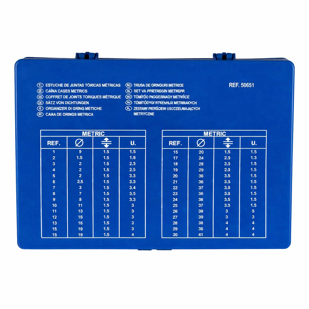 L’étui de joints toriques Métriques contient 386 pièces réparties en plusieurs dimensions standards, offrant une solution complète pour les opérations de maintenance, réparation et étanchéité. Conçu pour répondre aux besoins des professionnels, ce coffret permet d’intervenir rapidement sur systèmes hydrauliques, pneumatiques, circuits de carburant et divers équipements industriels ou automobiles. Il est particulièrement adapté aux applications hydrauliques telles que les hayons élévateurs, pompes, vérins et raccords. Les joints sont organisés par tailles dans un coffret rigide facilitant l’identification, le rangement et le transport. Cet assortiment est idéal pour le remplacement de joints usés lors d’interventions courantes sur moteurs, blocs hydrauliques ou circuits d’huile. Compact et pratique, il constitue un indispensable pour ateliers, véhicules de service et techniciens itinérants, garantissant une disponibilité immédiate des dimensions les plus utilisées et un gain de temps appréciable lors des opérations de dépannage.